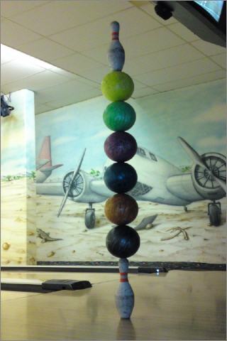6 Bowlingkugel und 2 Kegel
