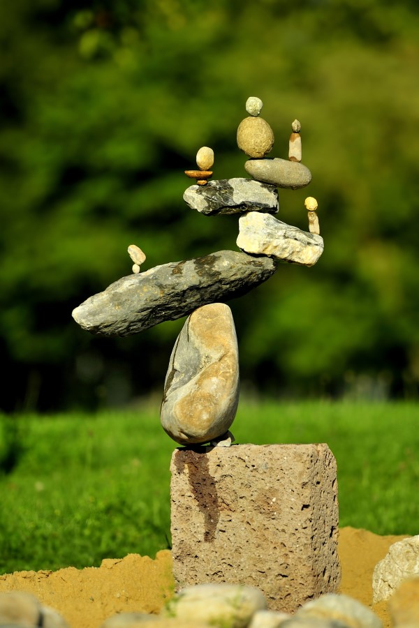Man muss schon beim Steine sammeln darauf achten, dass die Steine eine Dreipunktlagerung besitzen, denn nur so kann ein Gegenstand auf den anderen in Balance kommen.